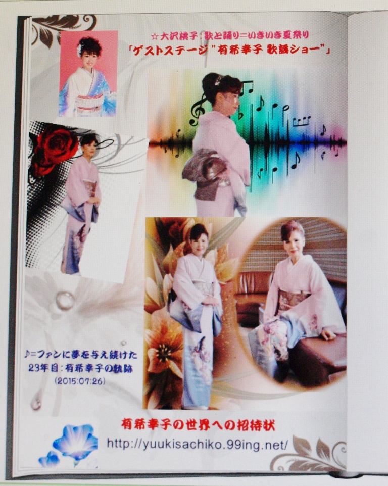 ♪=「鏡花水月」の心境に満ちる”有希幸子 歌謡ショー”が、平成27年10月4日(日)に東洋健康ランドで開催!