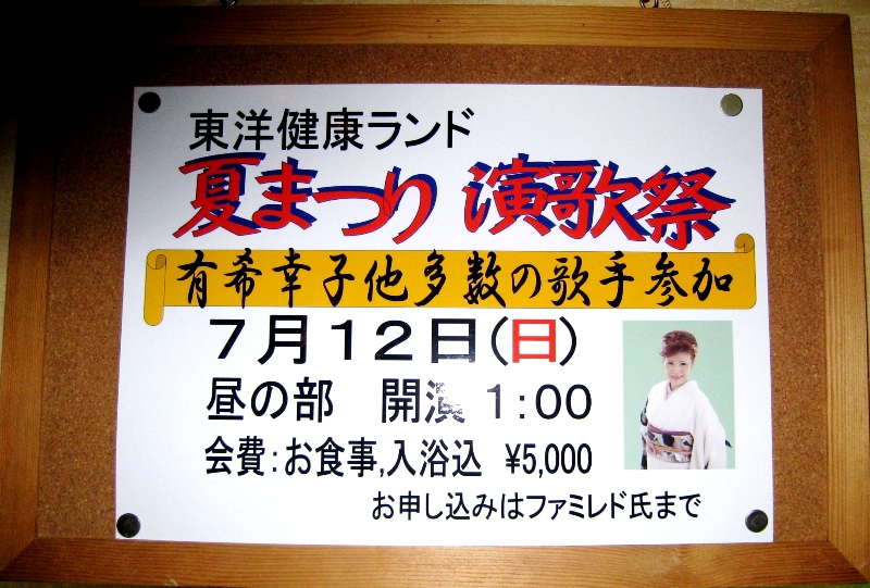 お知らせ予告!♪=東洋健康ランド『夏まつり演歌祭』を観にいこう!!